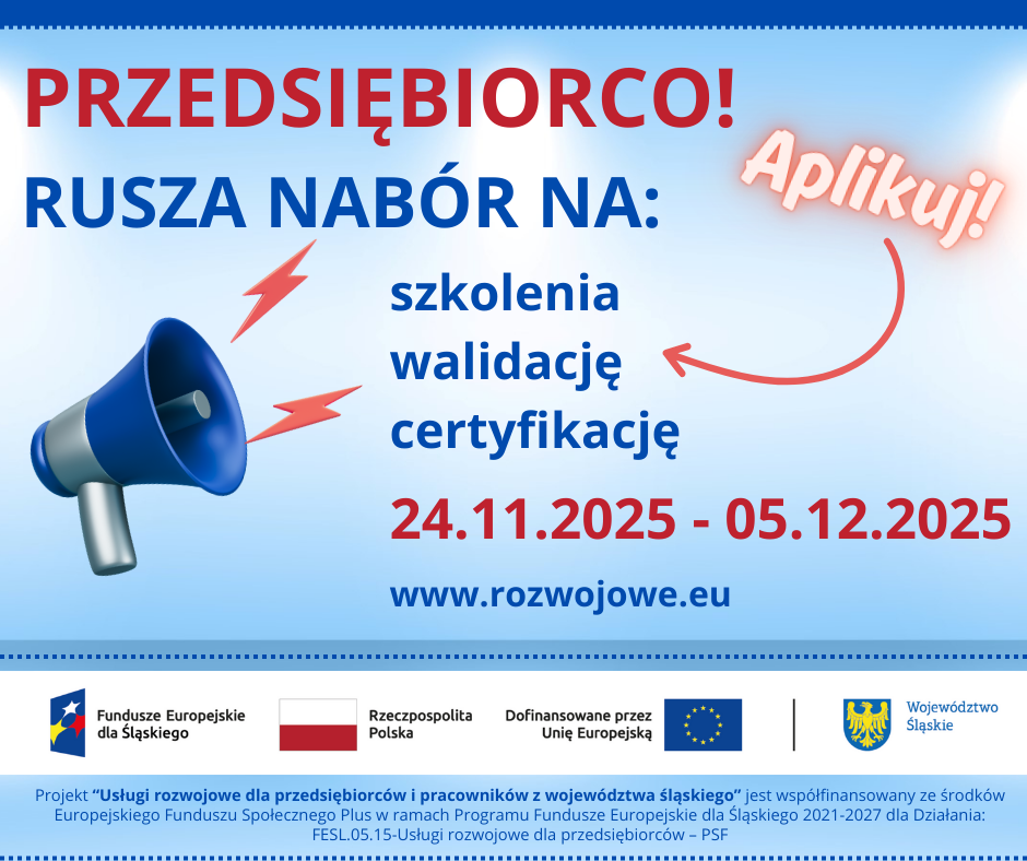 Rusza nowy nabór na szkolenia w ramach projektu „Usługi rozwojowe dla przedsiębiorców i pracowników z województwa śląskiego”!